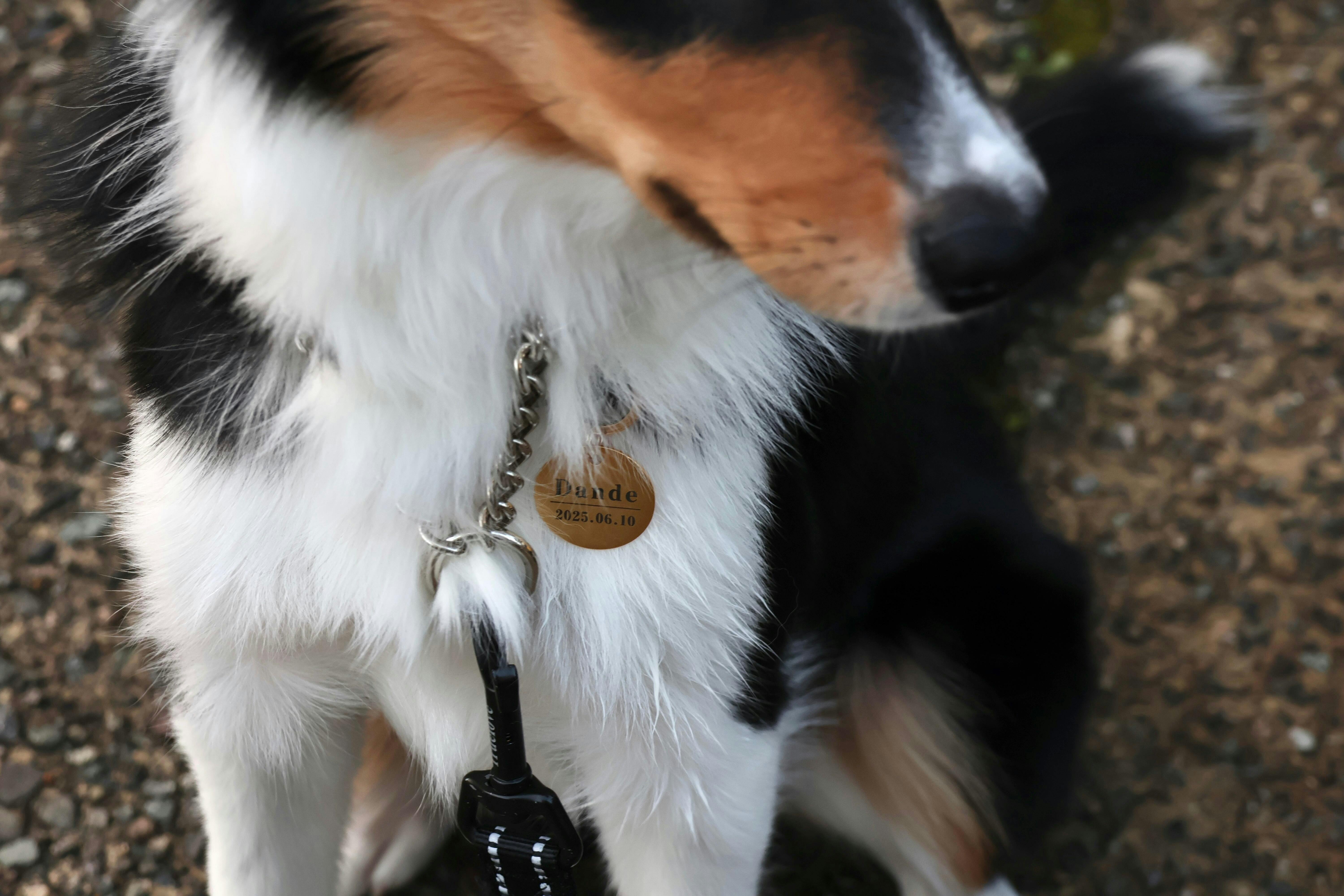 子犬を迎えて1ヶ月間ネームタグを探してこの商品にたどり着きました。通常はタグに連絡先を記入することが多いと思うのですが、アプリから表示のOn/Offを切り替えられるDOGGY'sQRの仕組みは秀逸だと思います。QRコードを読み取って場所を共有する仕組みも斬新で良いですね。タグはつや消しの真鍮の質感もよく、エッジはきれいにバリが落としてあって安心感があります。文字やレイアウトのデザインは微妙なリクエストに何度も応えていただき、満足できるものが完成しました。ありがとうございました。
